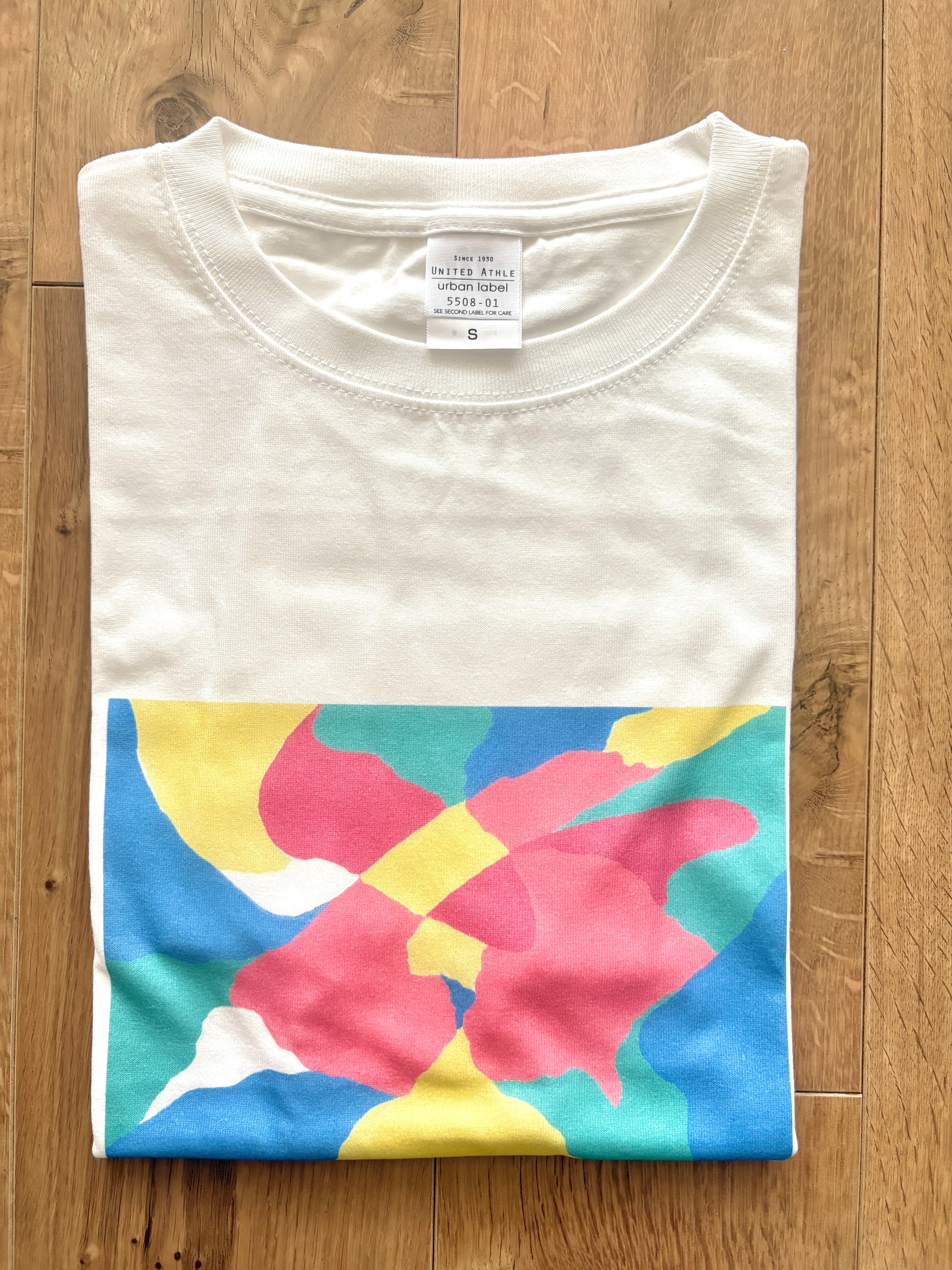 カラフルなアクリルアートをTシャツにしました。